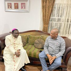 Catholic Bishop of Sokoto Diocese, Bishop Matthew Hasssan Kukah on Wednesday night paid a courtesy visit to the Chief Whip of the Senate and former Governor of Abia state, Senator Orji Uzor Kalu