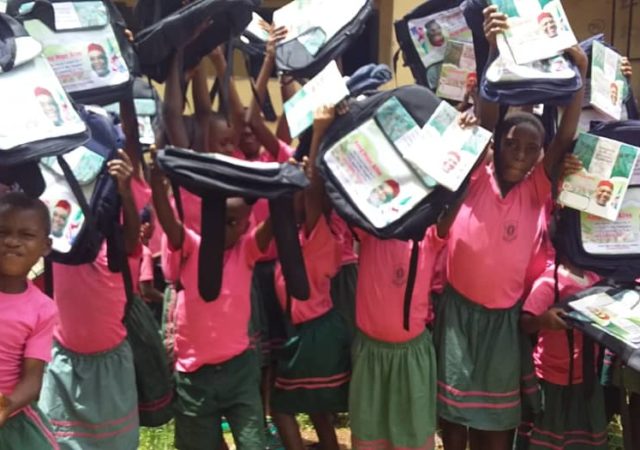 Photos: Students Shower Praises On Sen Kalu As They Receive Educational Materials