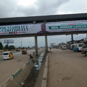 The campaign banner had the inscription, “For Continuity and Stability, Ahmad Lawan for President.”