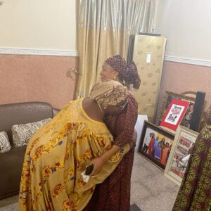 The daughter of APC Presidential Candidate and the Iyaloja and of Lagos,Chief Mrs Folashade Tinubu Ojo paid a courtesy visit to the mother of Chief Whip of the Senate, Elder (Chief)Mrs Eunice Uzor Kalu popularly known as Odiukonamba on Thursday.